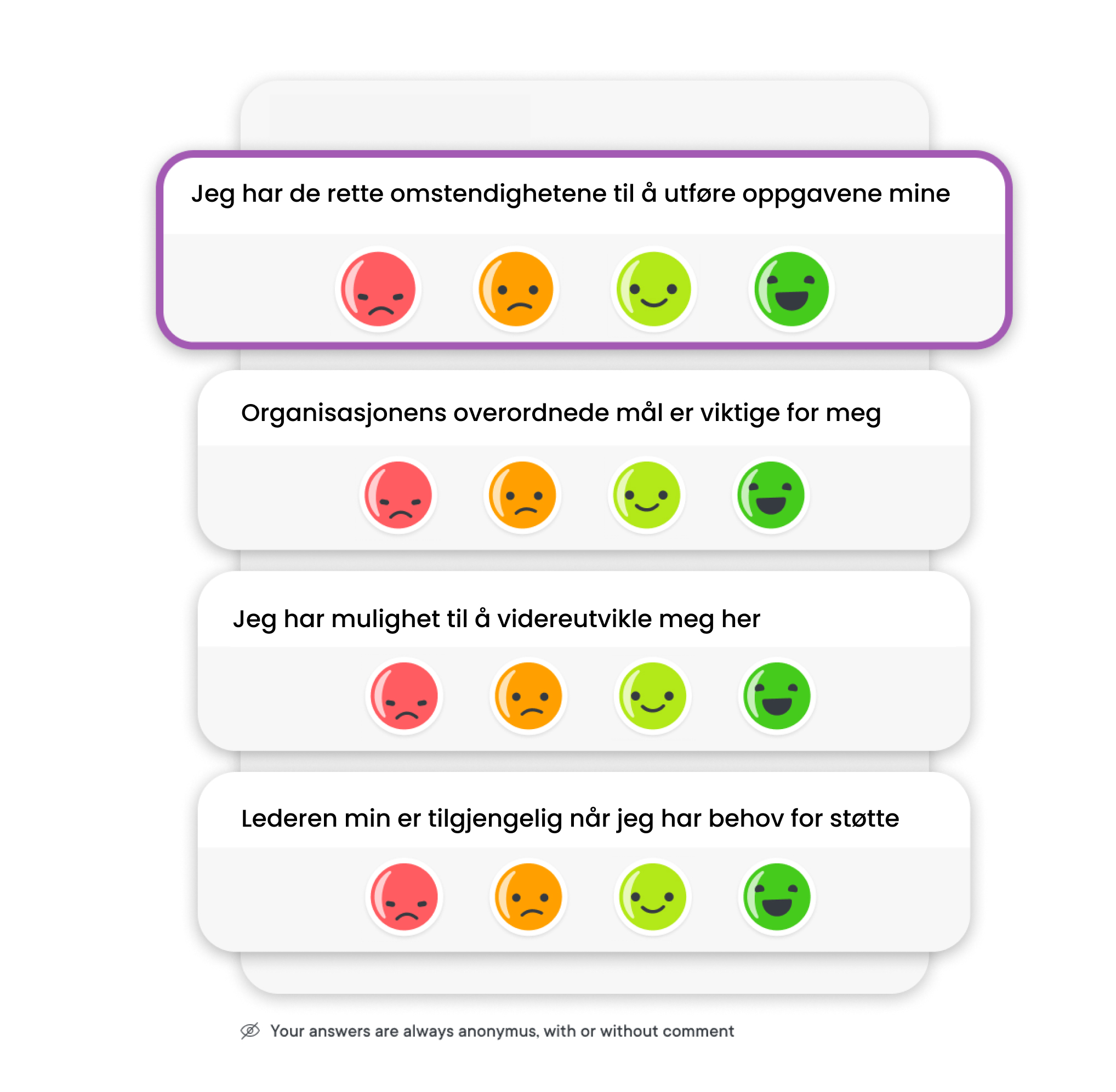 I tillegg får dere kvalitativ innsikt gjennom anonyme kommentarer, som gir verdifull kontekst bak tallene og hjelper dere å forstå hva medarbeiderne faktisk opplever.